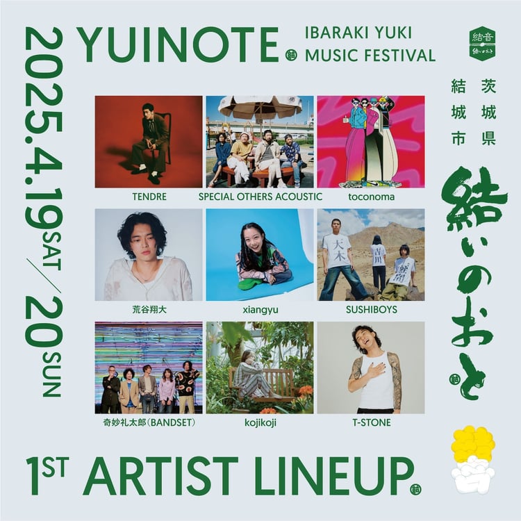 「結いのおと」は地域固有の文化資源である神社仏閣、酒蔵、結城紬の産地問屋などの空間をステージとする音楽祭。次回の出演アーティスト第1弾としてTENDRE、SPECIAL OTHERS ACOUSTIC、toconoma、荒谷翔大、SUSHIBOYS、奇妙礼太郎、kojikoji、xiangyu、T-STONE、池田理論、Wemma、進藤雨日が発表された。