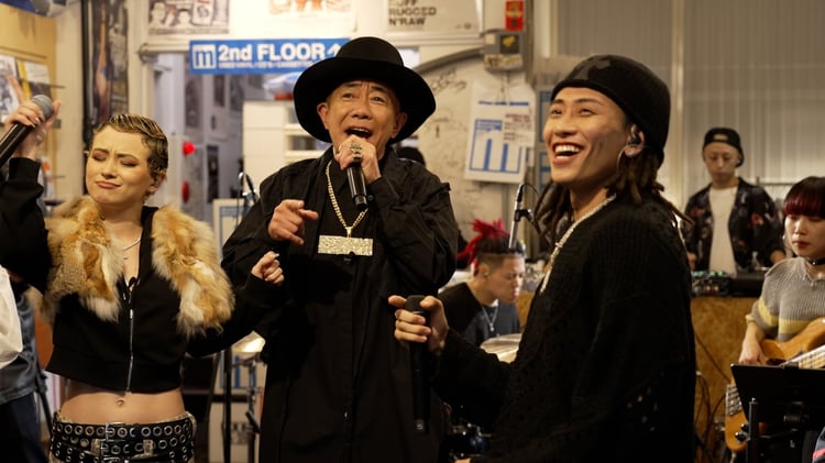 木梨がABEMAでレギュラー番組を持つのは初めて。「木梨レコード」は、”ポツンと佇むレコード店”をオープンさせた木梨がアルバイト役のAshleyとともに、ヒップホップ界の“アニキ”たちと店内で生バンドセッションをする音楽バラエティだ。各方面で活躍するミュージシャンたちで“木梨BAND”を組んで演奏し、世界に1枚だけのレコードを作っていく。