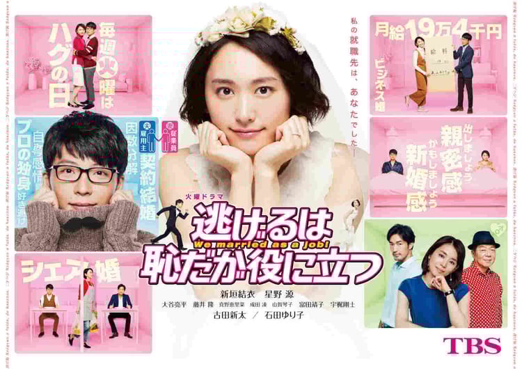 新垣結衣と星野源の共演作「逃げるは恥だが役に立つ」などドラマ6作品が年末年始にTBSで一挙再放送される。