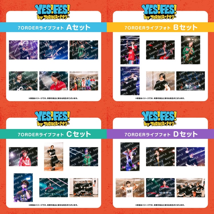 「YES! FES!」は7ORDERが氣志團とWATWINGを招いて行った初の主催イベント。ナタリーストアではTシャツ、フーディー、フェイスタオル、アクリルキーホルダー、アクリルアクセサリーを購入できるほか、事後販売のみの商品として7ORDERのライブフォトが販売されている。ライブフォトは6枚入りセットを4種類販売中。事後販売の期間は本日12月27日18:00から1月13日23:59までとなる。