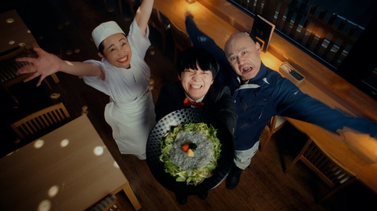 「想星のアクエリオン Myth of Emotions」はTOKYO MXほかで1月9日に放送スタートした、オリジナルロボットアニメシリーズ「アクエリオン」の新作。神奈川県藤沢市江の島を舞台に、それぞれある感情が欠落したキャラクターたちが、己の感情と宇宙の存亡を賭けて壮大な愛の神話を紡ぐストーリーだ。MVはハリウッドザコシショウ、キンタロー。、ほしのディスコ(パーパー)の3名が出演し、「アクエリオン」シリーズを象徴する“三位一体”をテーマに、アニメの舞台である江の島で“幻のしらす丼”を作るという内容になっている。