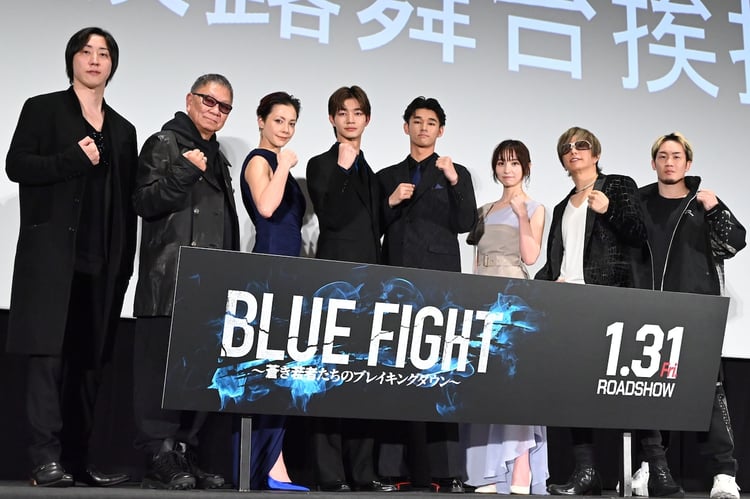 1月31日に全国公開される映画「BLUE FIGHT ~蒼き若者たちのブレイキングダウン~」の完成披露試写会舞台挨拶が本日1月21日に東京・丸の内ピカデリーで行われ、主演の木下暖日と吉澤要人(原因は自分にある。)、共演の篠田麻里子、土屋アンナ、GACKT、監督の三池崇史、エグゼクティブプロデューサーを務める格闘家の朝倉未来と起業家の溝口勇児が登壇した。