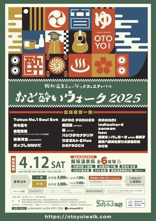 4月12日に福島県福島市飯坂町の飯坂温泉街で開催される音楽イベント「おと酔いウォーク 2025」の出演アーティスト第1弾が発表された。