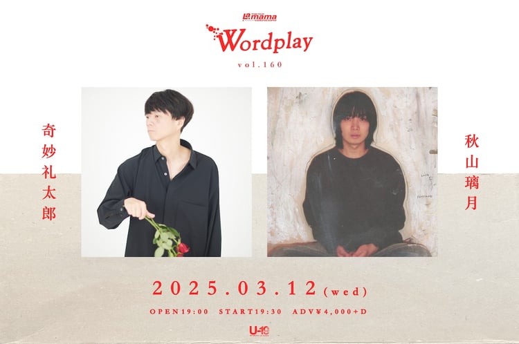 奇妙礼太郎と秋山璃月が出演するライブイベント「Wordplay vol.160」が3月12日に東京・渋谷La.mamaで開催される。