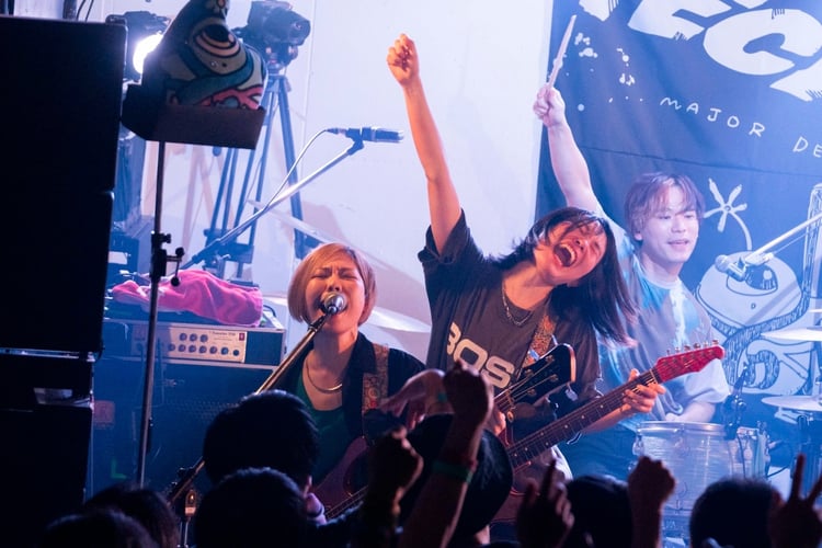 「君はいなせなガール」では藤田がメインボーカルをとりつつ、もっさとのコーラスワークが光る。バンドの歴史をワンマンライブのセットリストで一気に振り返るという盛りだくさんな内容にオーディエンスは終始大盛り上がり。ライブ本編の終盤、朝日はうっかりワンマンツアーを行うことをほのめかしたが、誤魔化すように「次の曲いこう!」と叫び、「bloom」へとつなげた。そしてバンドは2024年7月発表の配信シングル曲「人生なんにもわかんねえ!」を届けた。