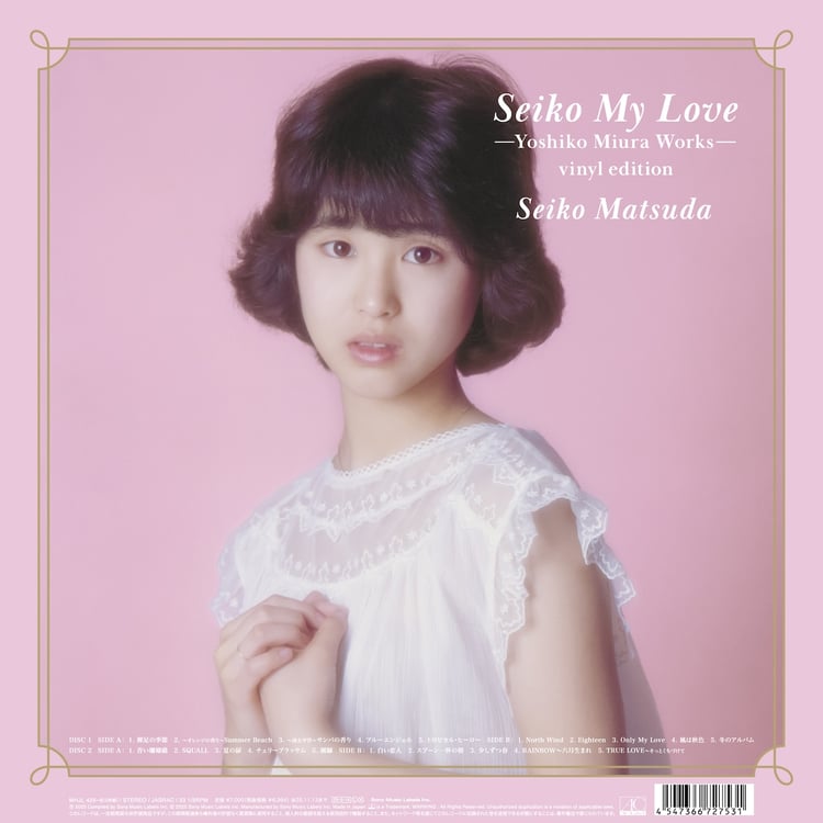 「Seiko My Love~Yoshiko Miura Works~」は、デビュー曲「裸足の季節」や、「青い珊瑚礁」「風は秋色」「チェリーブラッサム」「夏の扉」など初期の名曲の数々を作詞し、2023年11月にこの世を去った作詞家・三浦徳子の楽曲を集めた作品集。三浦が松田のために歌詞を書いた楽曲から厳選した20曲のリマスタリング音源が収められ、人気シングル曲のみならず、当時アルバムに収録されなかったシングルB面曲「RAINBOW~六月生まれ」「少しずつ春」や、アルバム曲「Only My Love」「SQUALL」などが含まれる。ヴァイナルカラーはこの作品のために作られたオリジナルピンク。レコードの時代にヒットした松田のみずみずしく弾ける歌声をアナログ盤で楽しめるので、気になる人はチェックをお忘れなく。なお今作には松田による特別寄稿、生前の三浦によるコメントを記したライナーノーツが同梱される。