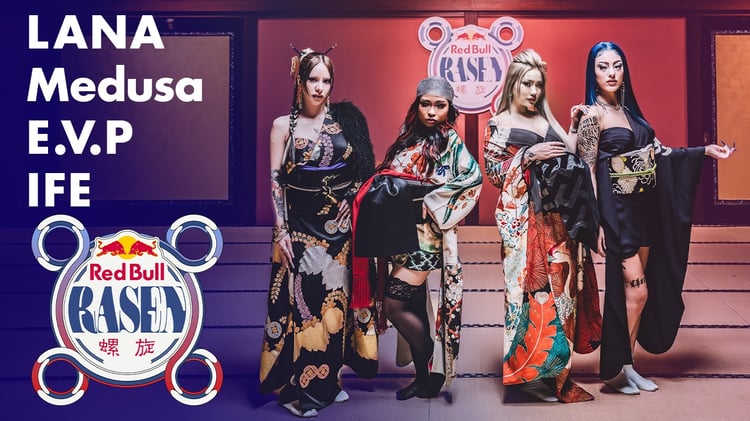 毎回異なるコンセプトでラッパーとビートメイカーを選出し、その場限りのサイファーを映像作品にしてきた「RASEN」。今回はいつものスタジオを初めて飛び出し、豪華絢爛な和室を舞台に、花魁をイメージした和装をまとったLANA、Medusa、E.V.P、IFEが集結している。