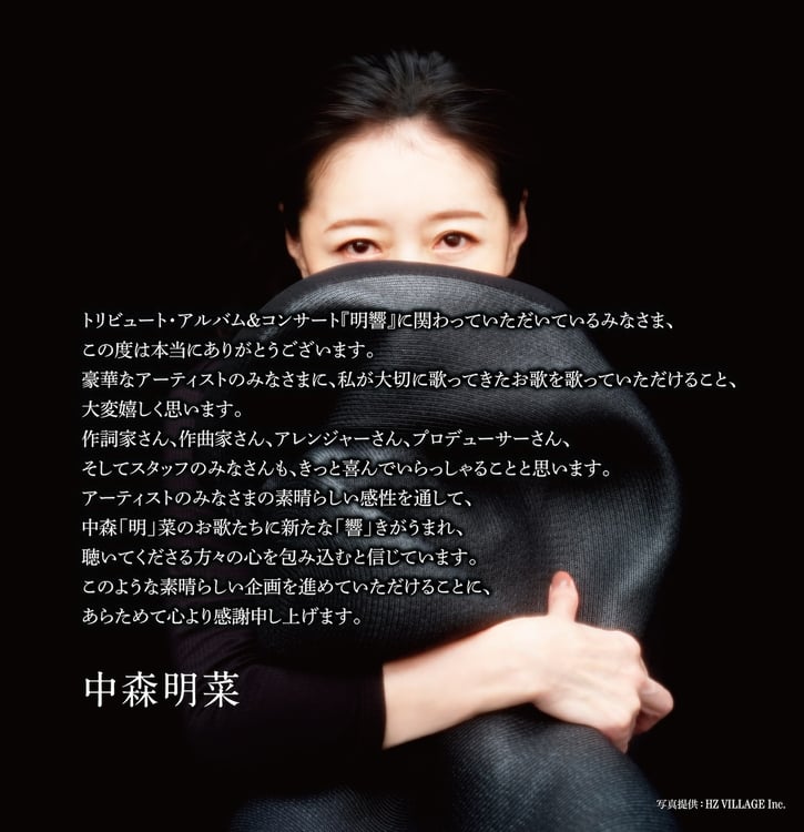 アーティストのみなさまの素晴らしい感性を通して、中森「明」菜のお歌たちに新たな「響」きがうまれ、聴いてくださる方々の心を包み込むと信じています。