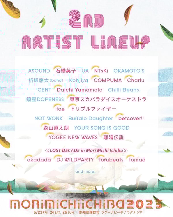 5月23日から25日までの3日間に愛知・蒲郡ラグーナビーチとラグナシアで開催される野外イベント「森、道、市場2025」の出演アーティスト第2弾が発表された。