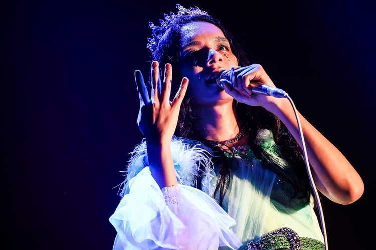 残るメンバーが奏で始めたのは「つづら折り」。繊細なピアノの音色がアンサンブルを牽引し、後半戦への期待を高めていく。そして再びステージに現れたアヴちゃんは、オレンジのチュチュにバレエシューズという出で立ちにチェンジ。メンバー1人ひとりとアイコンタクトを取ったあと、しっとりと穏やかな歌声で会場を包み込んだ。一方「杜若」は1人ステージに残ったアヴちゃんが椅子に腰を下ろし、重厚なストリングスの音色に乗せて熱く歌い上げる。曲の後半では黒を基調とした衣装に着替えた4人も加わり、ダイナミックなサウンドで客席を圧倒した。