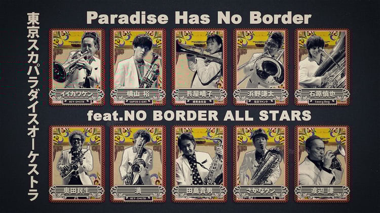東京スカパラダイスオーケストラが3月19日にリリースするベストアルバム「NO BORDER HITS 2025→2001 ~ベスト・オブ・東京スカパラダイスオーケストラ~」より、新録曲「Paradise Has No Border feat.NO BORDER ALL STARS」の参加ゲスト10名が発表された。