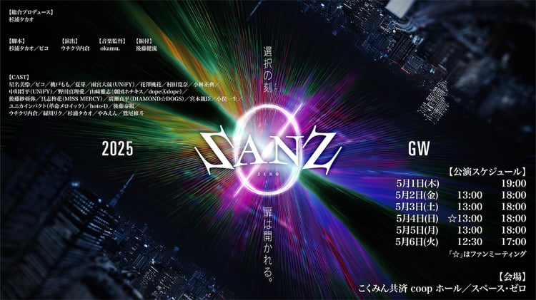 本作は2016年8月に東京・新宿村LIVEで上演された「SEPT Vol.6『SANZ』」をセルフリメイクした“ファンタジーライブステージ”。主演を務める星名のほか、「SEPT」公演の常連である歌い手のピコ、コスプレイヤー兼俳優・桃戸もも、ドラマー兼俳優の夏芽、ダンスボーカルグループUNiFYの雨宮大晟、中川将平など、バラエティに富んだ出演者が登場する。