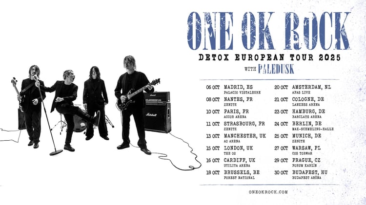 ONE OK ROCKが、10月よりヨーロッパツアー「ONE OK ROCK DETOX European Tour 2025」を開催することが決定した。