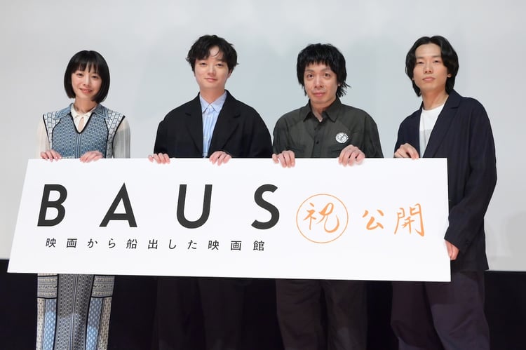 映画「BAUS 映画から船出した映画館」の公開初日舞台挨拶が本日3月21日に東京・テアトル新宿で開催され、監督の甫木元空(Bialystocks)と、出演者の染谷将太、峯田和伸(銀杏BOYZ)、夏帆が登壇した。