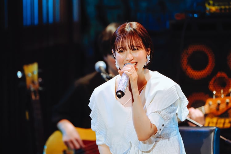 今回のライブが同期なしの完全生音であることを改めて伝えた武藤は、ループ感のあるポップチューン「ヘッドホンコミュニケーション」を披露。全身で音楽を楽しむように体を揺らしながらグロッケンを演奏し、ニュアンスたっぷりに歌声を届けた。「風花」を歌ったあと武藤は思いの外、短くなってしまったというボブスタイルに言及。「大丈夫かな? でもさっき聖子ちゃんっぽいって言われて……」と憧れの松田聖子の名前が挙がったことを喜び、「おニューな私でお届けします」と笑顔を見せた。