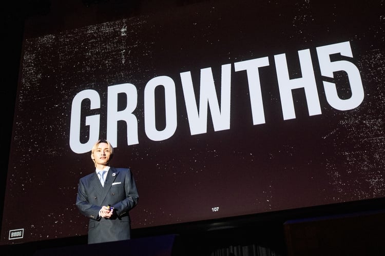 「才能を殺さないために。」をスローガンに掲げ2020年の設立されてから、今年で5周年を迎えたBMSG。SKY-HIは「BMSGの音楽の成長」「音楽業界そのものの成長」という中長期目標に基づいて、「GROWTH5」と題した5項目についてプレゼンを行った。