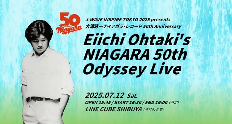 大滝詠一のレーベル、ナイアガラ・レコードの設立50周年を記念したライブイベント「J-WAVE INSPIRE TOKYO 2025 presents 大滝詠一ナイアガラ・レコード 50th anniversary Eiichi Ohtaki's NIAGARA 50th Odyssey Live」が7月12日に東京・LINE CUBE SHIBUYA(渋谷公会堂)で開催される。