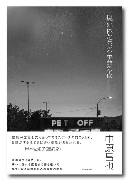 Hair Stylistics名義でミュージシャンとして活動し、作家、映画評論家としても知られる中原昌也の病後初の小説集「焼死体たちの革命の夜」が本日4月30日に河出書房新社より発売された。