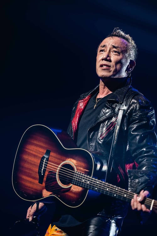 長渕は大人数のバンドメンバーを携え、今回のツアーのタイトルにも引用された新曲「HOPE」をはじめ、新旧選りすぐりのナンバーを次々と披露。スタジアムロック調の楽曲では軽やかな足取りでステージ中を駆け回るだけでなく、ギターを大きく振ってバンドメンバーを指揮したり、ハイジャンプで観客たちのコールのタイミングを導いたりと、鍛え上げられた肉体を駆使したステージングを繰り広げた。一方弾き語りやピアノ伴奏のみの楽曲では、アリーナ席から最後方までさまざまな方向に視線を向け、直接言葉を届けるように歌唱。自然とオーディエンスによる合唱が巻き起こるシーンも多数あり、会場は終始一体感に満ちていた。
