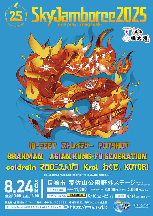 8月24日に長崎・稲佐山公園野外ステージで行われる恒例野外フェス「Sky Jamboree 2025~one pray in nagasaki~」の追加出演アーティストが発表された。