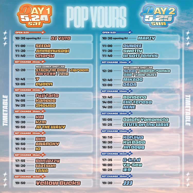 5月24、25日に千葉・幕張メッセ国際展示場9~11ホールで行われるヒップホップフェスティバル「POP YOURS 2025」のタイムテーブルが発表された。