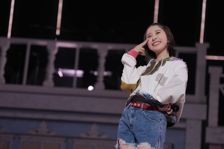 ステージにはヨーロッパの街並みを思わせる6つの集合住宅が並ぶ。タイトルに冠された「Maison de Poupée」とは、フランス語で「ドールハウス」の意。開幕のブザーが鳴ると、「人生は螺旋階段。ゆっくりと回りながら上がっていく」と、今年6月に30歳の誕生日を迎える玉井が、さまざまな出会いと別れを繰り返す中で生まれては消えるいくつもの“私”について語るモノローグが流れる。そして「⼀夜限りのミュージカルコンサート『Maison de Poupée』、開幕です」と物語の始まりを告げると、集合住宅の窓に6人の女性のシルエットが浮かび上がり、玉井はこのコンサートのテーマソングとして書き下ろされた「Maison de Poupée」を軽やかに歌った。