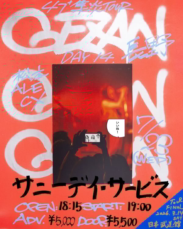 全国47都道府県に上海を加えた全50公演が行われる「47+TOUR『集炎』」。今回の発表では7月23日の長野・ALECX公演にサニーデイ・サービス、8月2日の島根・アポロ公演にマヒトゥ・ザ・ピーポー(GEZAN)、8月3日の鳥取・米子AZTiC laughs公演にKOM_I×NANAO KOBAYASHI(FATHER)、8月9日の福島・clubSONICiwaki公演にU-zhaan×環ROY×鎮座DOPENESS、8月30日の静岡・FM STAGE公演にTHE GUAYSとAnd Protectorが出演することが明らかとなった。なおマヒトは島根出身ということもあり、島根公演のフライヤーには「オレの故郷や~」と書かれている。