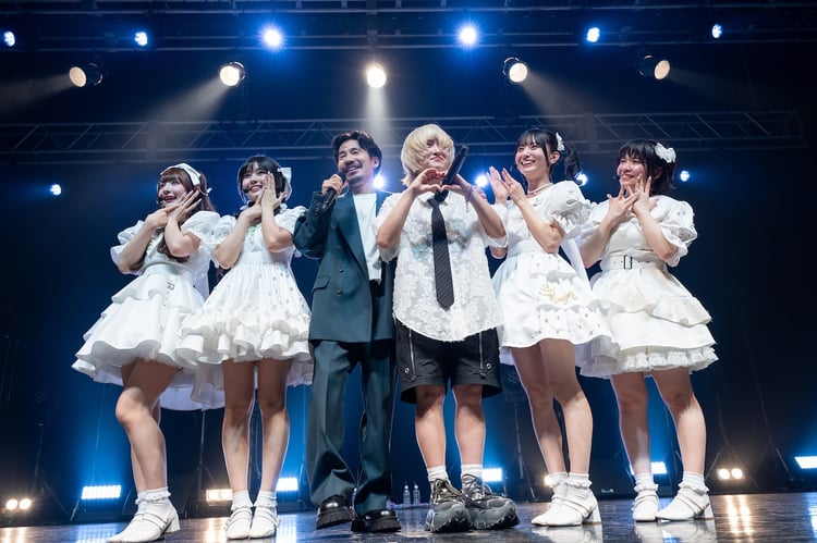 初めて清 竜人25を観る礼賛ファンも多い中、「我々も負けてられない!」と気合いを入れ直した清 竜人25は、クールでアーバンな「My Girls」「アバンチュールしようよ」、アッパーで運動量の高い「ラブ♡ボクシング」と緩急を付けてフロアを揺らす。「ラブ♡ボクシング」では竜人がシャドーパンチを繰り出しながら「ガードをかわして!」など叫びながら熱狂する観客をさらに煽った。さらにフロアを沸かすべく、清 竜人25はここで「Mr.PLAY BOY…♡」を投下。「スケベ!!」コールで双方のファンが1つになり、続く「A・B・Cじゃグッと来ない!!」で場内はカオスと化す。さらに最新のアッパーチューン「世界を愛せますように!」が歌われ、O-EASTはハッピーなムードで包まれた。