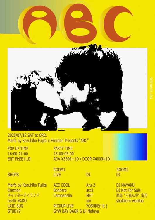 7月12日に東京・ORD. DAIKANYAMAにて、ポップアップ&パーティイベント「Marfa by Kazuhiko Fujita x Erection presents "ABC"」が開催される。