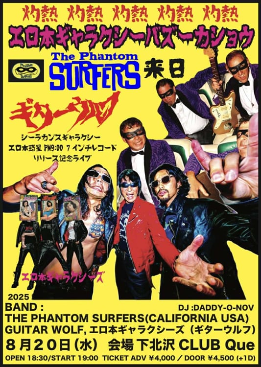 灼熱!エロ本ギャラクシーバズーカショウ ファントムサーファーズ来日&ギターウルフ シーラカンスギャラクシー エロ本惑星PM9:00 7インチレコードリリース記念ライブ
