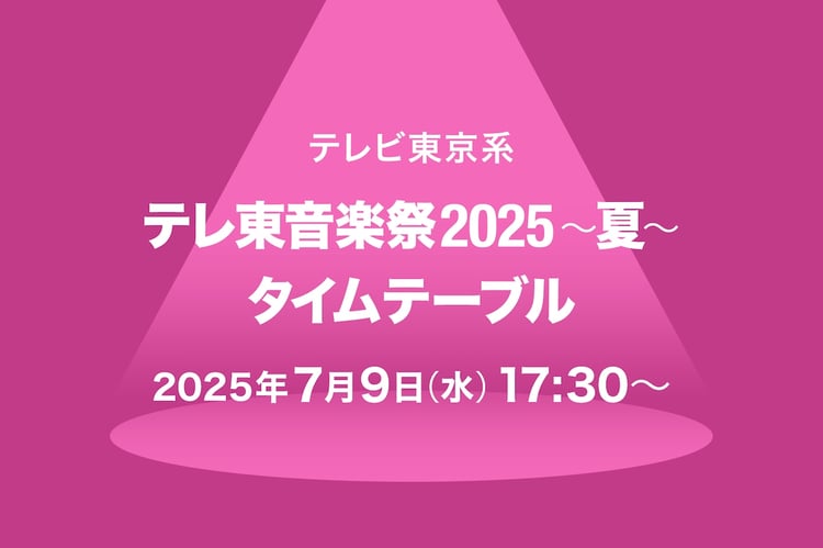 明日7月9日17:30よりテレビ東京系で約4時間半にわたって放送される音楽特番「テレ東音楽祭2025~夏~」のタイムテーブルが発表された。