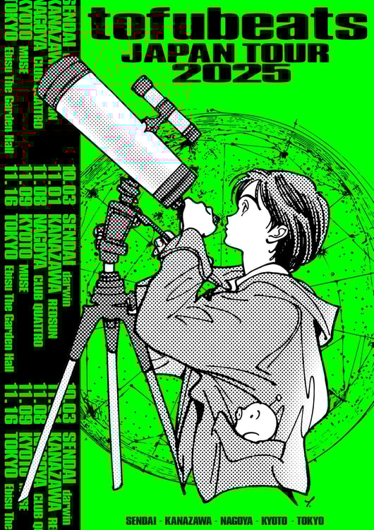 「tofubeats JAPAN TOUR 2025」は全国5都市で6公演が行われるツアー。ゲストにはNeibissらラインナップされている。ツアーフライヤーのイラストは山根慶丈、デザインはTamio Iwaya(GraphersRock)が手がけた。イープラスでは7月21日までチケットの先行予約を受付中。