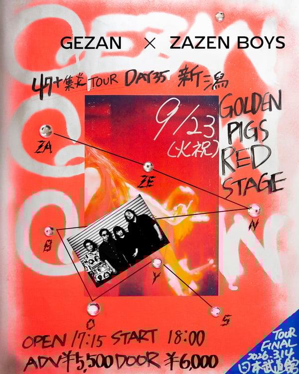 GEZANが現在開催しているツアー「47+TOUR『集炎』」より福井、富山、石川、新潟の4公演のゲスト出演者が発表された。