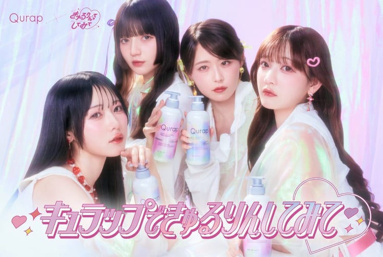 このコラボキャンペーンは、Qurapから「ラッピングモイスト」シリーズに続く、うねり髪向けの新シリーズ「ラッピングコントロール」が8月1日に発売されることを記念して展開されるもの。グループ名のきゅるりんってしてみてと、ブランド名のQurapの語感がリンクしていることから実現した。