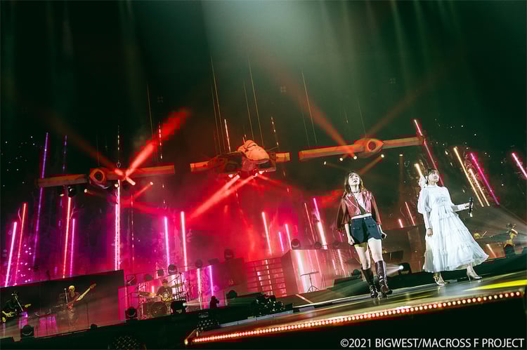 最後に2人は「マクロスF」の舞台である「2059年」まで歌い続けることを改めて誓ったのち、結びの言葉として「これからも、私たちの歌を聴けー!」のキメフレーズをユニゾン。固い握手と抱擁を交わし、手をつないでステージをあとにした。
