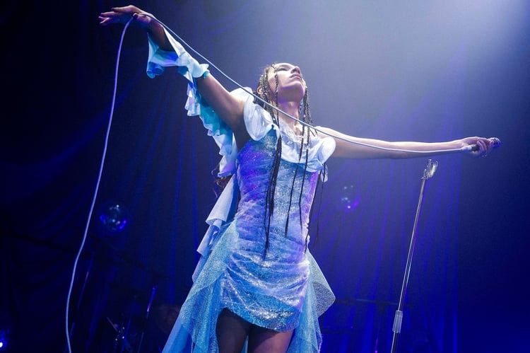 前向きなメッセージを壮大なアンサンブルに乗せた「燃える海」で終盤のダークな展開にピリオドが打たれ、ステージ上の5人に万雷の拍手が送られる。ハッピーエンドの空気が漂う中、本当のラストナンバーとして届けられたのは「雛市」。まさかの展開に息を呑む観客を前に、アヴちゃんは現実を叩きつけるように「強く 強く生きてゆかなきゃ 世の中が優しい日はひとつもなかった」と歌い、やしちゃんが鳴らすヘビーなベースラインと相まって観客の身も心もビリビリと震わせた。すべての曲が終わった静寂の中でアヴちゃんがゆっくりと手を振り、ステージ前の幕が静かに閉じる。観客の手を優しく引いて希望の扉に導くのではなく、背中を突いて扉の外に叩き出すかのようなエンディング。オーディエンスに強い衝撃を与えたまま、今年の「蜂月蜂日」は終了した。