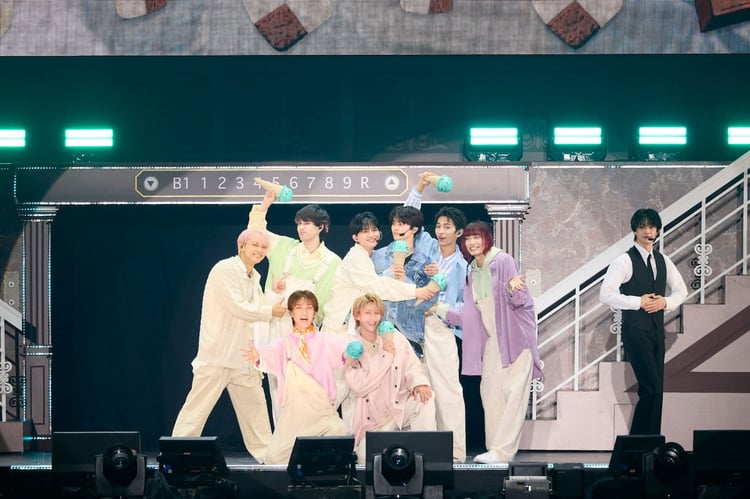 EBiDAN所属グループが一堂に会するライブイベント「EBiDAN THE LIVE 2025 HOTEL NINE STAR」が、8月15~17日の3日間、東京・国立代々木競技場第一体育館で開催された。「EBiDAN THE LIVE」(通称:エビライ)は毎夏恒例となっている、EBiDANによる年に一度のビッグイベント。開催14年目となる今夏のライブは「ホテル」がテーマで、全9組、総勢61人のEBiDANメンバーは、本公演でホテルクルーに変身。天空に浮かぶ極上のホテル「HOTEL NINE STAR」を舞台に、幻想的で刺激的なひとときを来場者へ提供した。この記事では昨日17日に行われた公演「Diamond GATE」の模様を、日替わりの楽曲や演出を中心にレポートする。
