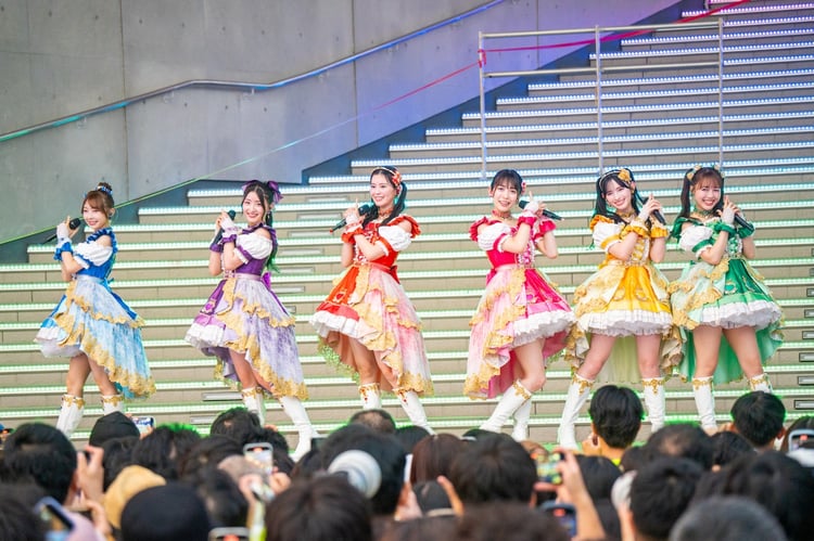 「スマホのカメラロールなんて どうせ私ばっかでしょ!? むしろそうじゃなきゃ一生許さない!」というキャッチーな歌詞とキュートな振付で大型の“バズ”を生み出した「超最強」。ニューシングルに表題曲の1つとして収録されているこの“推し活ソング”が満を持して披露されると、写真や動画を撮影できる恒例の“ロックオンフリータイム”がスタートし、宣伝部員は愛嬌たっぷりに歌う6人の姿を思い思いにカメラに収めた。さらに超とき宣はライブの人気曲「初恋サイクリング」や、代表曲の1つ「すきっ!~超ver~」もパフォーマンス。一体感みなぎるコールがお台場に響き渡った。