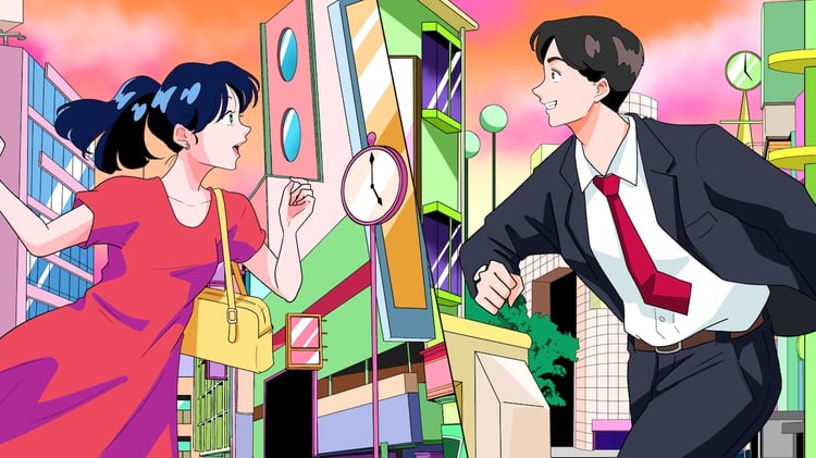 ミュージックビデオのイラストはchao!による描き下ろし。夕焼けに染まる渋谷の街を背景に、駆け寄るように顔を見合わせるふたりの男女が描かれている。90年代の恋愛ドラマを思わせるポージングと、ポップなカラーリングのビル群、レトロフューチャー風の時計塔など、“Newtro”ならではの街並みが楽曲の世界観とマッチした映像となった。