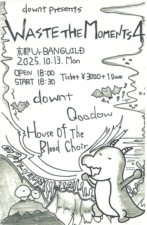 約2年4カ月ぶりの開催となる「WASTE THE MOMENT」は、2023年1月から不定期で行われている自主企画イベント。初の京都開催となる今回は、QoodowとHouse Of The Blood Choirをゲストに迎える。