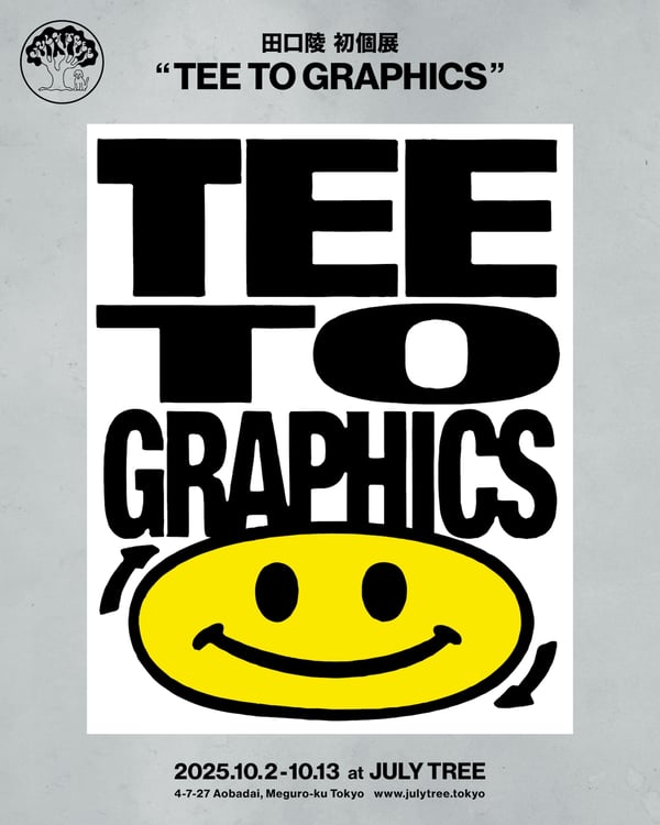 スチャダラパー、NONA REEVES、ASA-CHANG&巡礼など、音楽関連のアートワークを中心に幅広く活動するグラフィックデザイナー / アートディレクター田口陵の初の個展「TAGUCHI RYO SOLO EXHIBITION "TEE TO GRAPHICS"」が東京・JULY TREEにて10月2日から10月13日まで開催される。