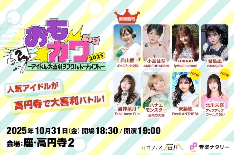 10月31日に東京・座・高円寺2にて開催される、アイドルによる大喜利イベント「おもカワ2025~アイドル大喜利シングルトーナメント~」の追加出演者が決定した。