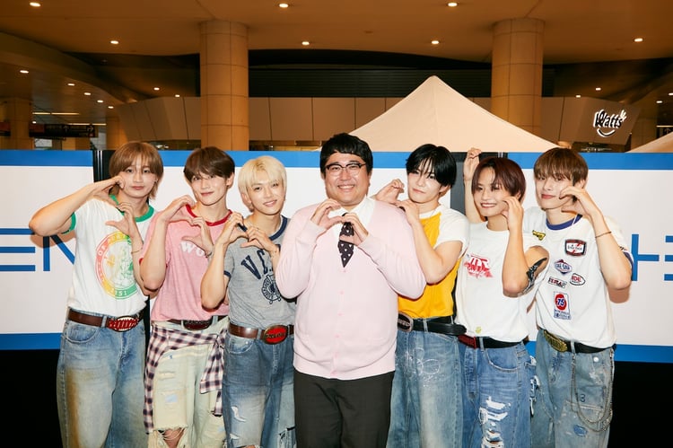 イベントはシングルのカップリング曲「Want you bad」のパフォーマンスからスタート。会場の熱気が高まる中、リーダーの谷口太一が「僕たちをお祝いに来てくれた方がいるそうです!」と呼び込むと、マヂカルラブリーの村上と、シングルのジャケットをイメージした“特製ラブリーケーキ”が登場した。