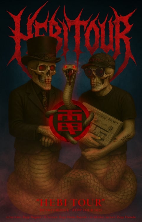愛知・Zepp Nagoya、大阪・Zepp Osaka Bayside、東京・Zepp Haneda(TOKYO)の3会場を舞台に行われるこのツアー。タイトルの発表と併せて、へびの出立ちが印象的なキービジュアルも公開された。