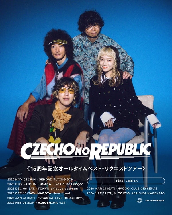 Czecho No Republicの全国ツアー「15周年記念 オールタイムベスト・リクエストツアー」の追加公演が決定した。