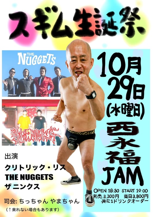 クリトリック・リスのスギムの誕生日である10月29日に東京・西永福JAMでライブイベント「スギム生誕祭」が開催される。