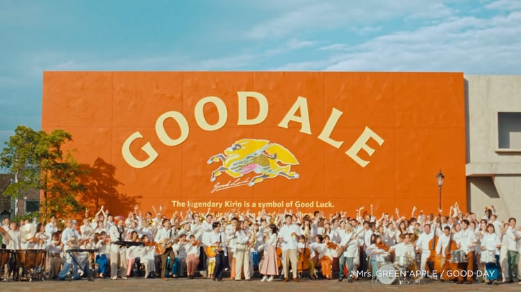 本日より放送されるのは、綾瀬、ミセス、浜辺、鈴木に加え、約200名のビッグバンドが新ブランド誕生を祝う「キリングッドエール まったく新しいキリンビールはじまる篇」。「キリングッドエール、誕生です!」という綾瀬の力強い宣言に続き、大森元貴のカウントを合図にミセスとビッグバンドが「GOOD DAY」の演奏を始め、ブランドリーダーとビッグバンドのメンバーが手を叩いたり歌ったりしながら“次世代定番ビール”誕生の高揚感を表現している。