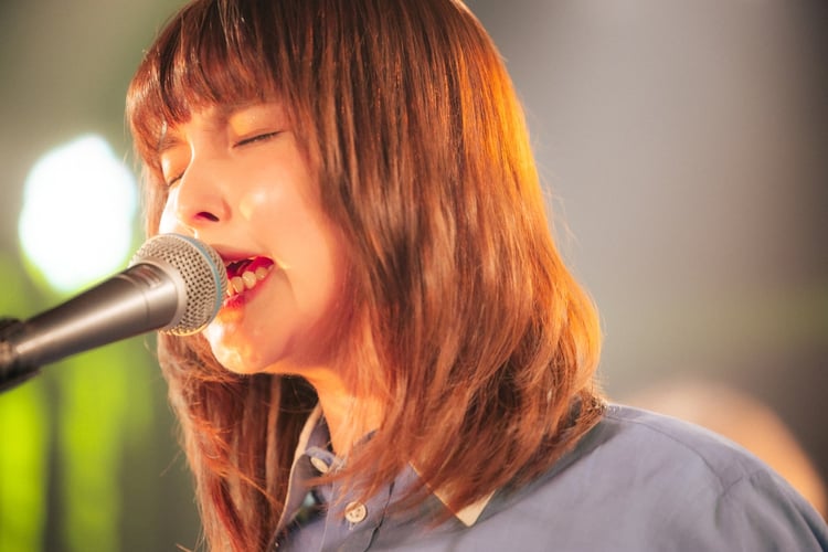 3人のバンドメンバーに続き、ステージに登場した坂口は「私はそっとつぶやいた これはそんなおはなし」とアカペラで歌い、自らの世界に誘う。そこにバンドサウンドが加わり、インディーズで初めてリリースしたシングルの表題曲「おはなし」でライブは幕を開けた。ギターをかき鳴らしながら、緩急のあるサウンドに乗せて多彩なニュアンスのボーカルを届けていく坂口。間奏で鍵盤ハーモニカを演奏した「fruits」、呪文のような中毒性のあるフレーズで会場をひとつにした「アンババババランス」と、カラフルな楽曲が続いていく。