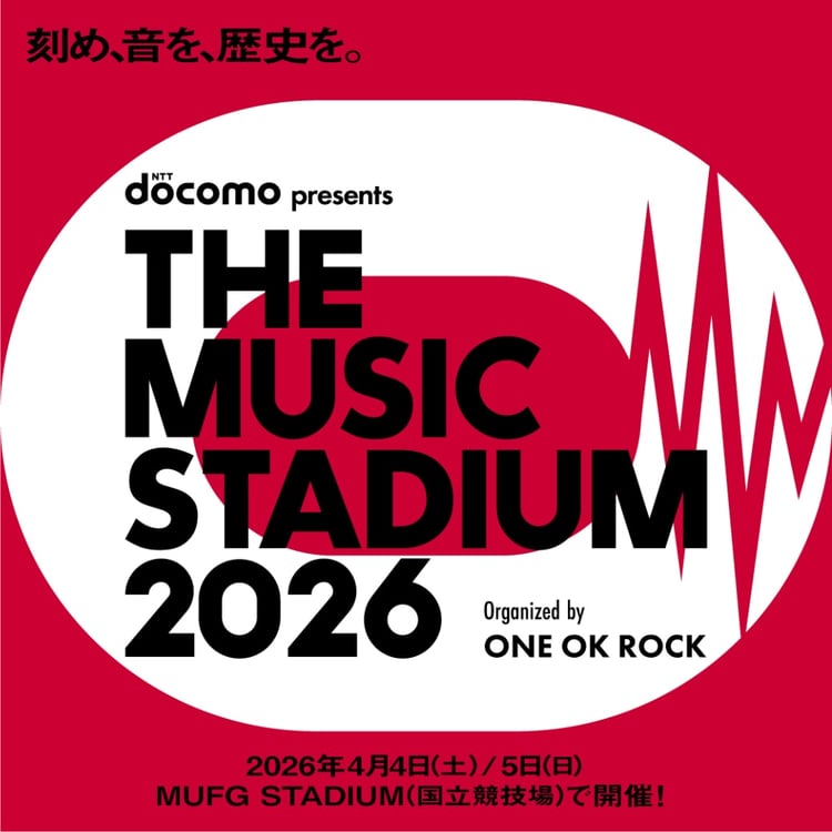 2026年4月4日と5日に東京・MUFGスタジアム(国立競技場)で開催されるONE OK ROCKのライブイベント「docomo presents THE MUSIC STADIUM 2026 organized by ONE OK ROCK」の出演者が発表された。
