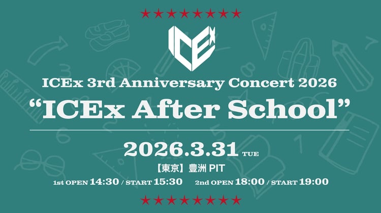 ICExが結成3周年記念日の3月31日に東京都・豊洲PITでライブイベント「ICEx 3rd Anniversary Concert 2026 "ICEx After School"」を開催する。